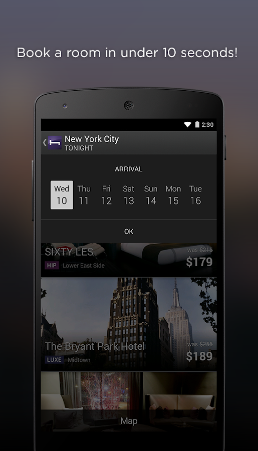 Download the hotel tonight app from google play or apple store 2.